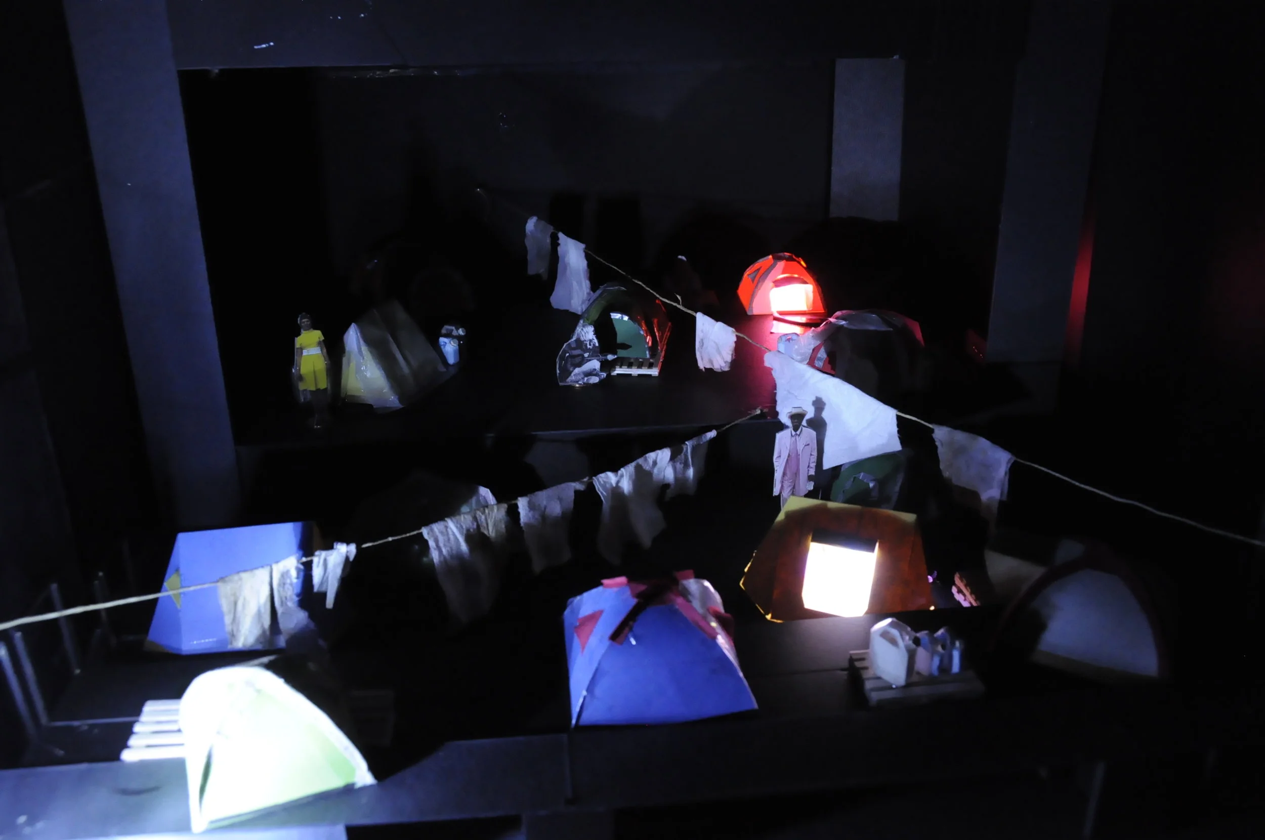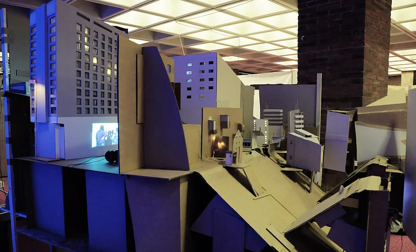 Miniaturen, Installation aus Karton, Finn- & Graupappe, Licht- & Soundinstallation