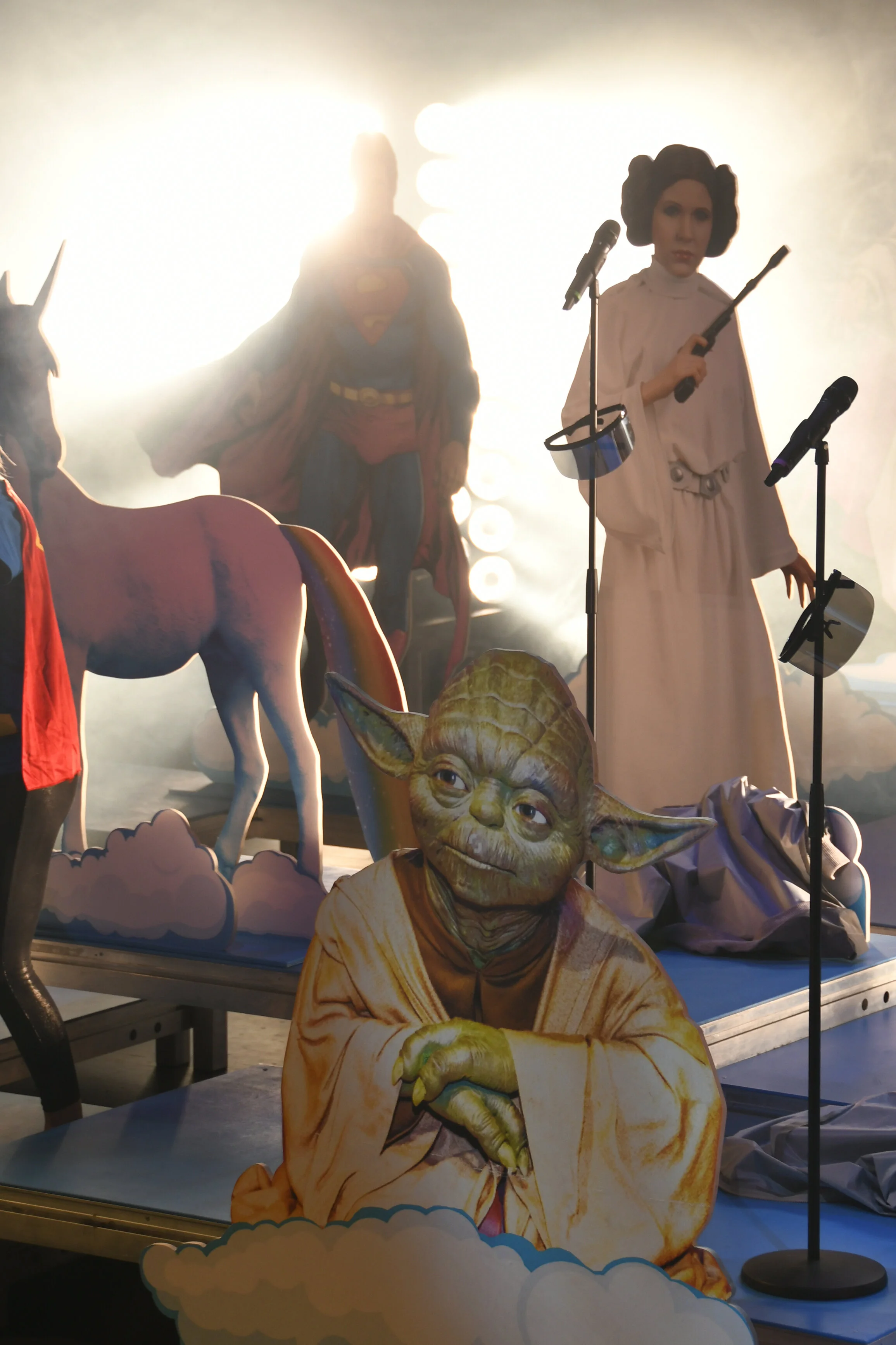 Eine seltsam konkrete Kleiderkammer, darin abgelegte und neue Rollenbilder, ein Körper als Projektionsfläche, Bilder und Sounds. „Wir sind super stolz auf euch!“ quiekt Heidi Klums Stimme durch den Raum, „mit euch würde ich in jede Kampagne ziehen!“. Das Finale ihrer TV-Show als Balanceakt zwischen militärischem Vokabular und mütterlicher Fürsorge. Daneben steht Germania, dieses Urbild deutscher Weiblichkeit zwischen Kriegerin und Mutter.